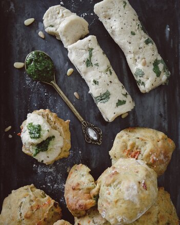 Tomatenbrötchen mit Pesto und veganem Frischkäse