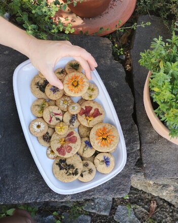 Herrlich bunte Blüten am Keksteller - einfach köstlich!