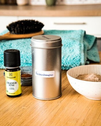 Die Tonerde mit dem Rohkakao (Bei hellem Haar kann alternativ dazu Mehl verwendet werden!) mischen und nach Belieben 2-3 Tropfen ätherisches Öl hinzugeben.