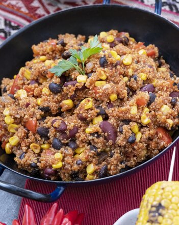 Ein leckeres Chili sin Carne mit Quinoa und tollen Gewürz, perfekt abgestimmt auf den Geschmack.