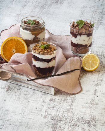 Dann das Vanillejoghurt und anschließend den Fruchtaufstrich ins Glas füllen. Solange schichten bis das Glas voll ist.