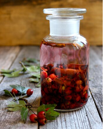 Das Ganze lässt man mindestens 2 Monate an einem schattigen Ort ziehen und schüttelt gelegentlich. Nach der Ziehzeit kann der Weißdorn Likör abgeseiht werden.