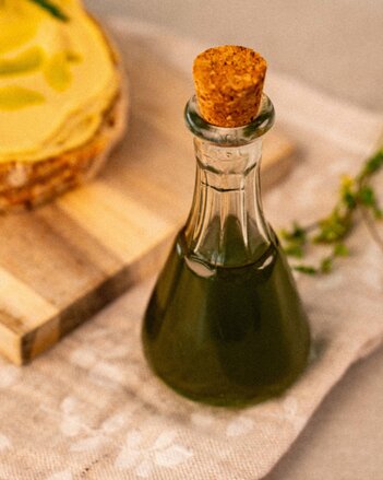 Das Öl hält sich im Kühlschrank einige Wochen und passt perfekt für Salate, Hummus, Caprese & Co.