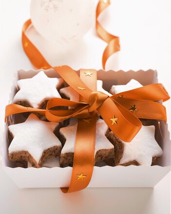 Den Teig 3 Stunden an einem kühlen Ort rasten lassen. Danach auf einer bemehlten Arbeitsfläche ausrollen und kleine Sterne ausstechen.