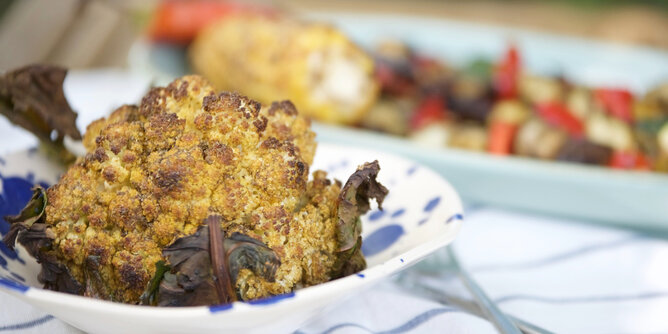 Die Grillsaison ist immer besonders fleischlastig - um für etwas Abwechslung zu sorgen, gibt es heute fleischlose Rezepte, die vom besonderen Grillaroma profitieren. Wie der im Ganzen gegrillte Blumenkohl, die Ratatouille-Spieße und die verschieden marinierten Maiskolben. Der rauchige Grillgeschmack harmoniert nicht nur mit Steak und Würsteln, er kitzelt aus so manchem Grünzeug ganz besondere Aromen heraus. In Kombination mit leckeren Marinaden, kann sich das vegetarische BBQ eindeutig sehen lassen.