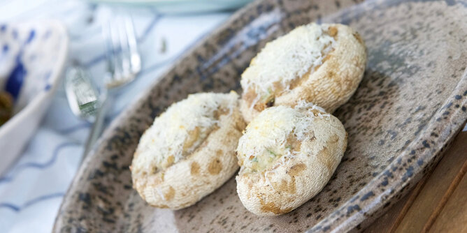 Für dieses Rezept greift man am besten zu Riesenchampignons - macht das ganze einfacher. Die Füllung besteht aus Ziegenfrischkäse, Semmelbröseln und etwas Parmesan. Die richtige Würze verleiht in diesem Fall die Adios! Salz Mischung mit Gartengemüse. So einfach und so gut!