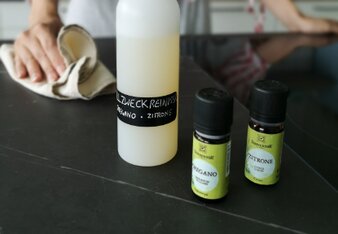 Achtung: Ätherische Öle sind hochkonzentrierte Pflanzenessenzen, die nicht unverdünnt angewendet werden sollten. Besondere Vorsicht geboten ist bei Kleinkindern, in der Schwangerschaft, bei Asthma, Epilepsie und Haustieren. Ganz allgemein sollten auch selbstgemachte, natürliche Putzmittel außerhalb der Reichweite von Kindern und Haustieren gelagert werden.