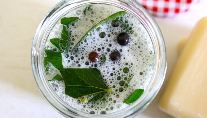 So geht’s: Zuerst wird ein starker Lavendeltee zubereitet. Dazu 2 Händevoll Lavendelblüten mit 1 Liter kochendem Wasser aufgießen. Nach 10 Minuten wird der Tee abgeseiht.