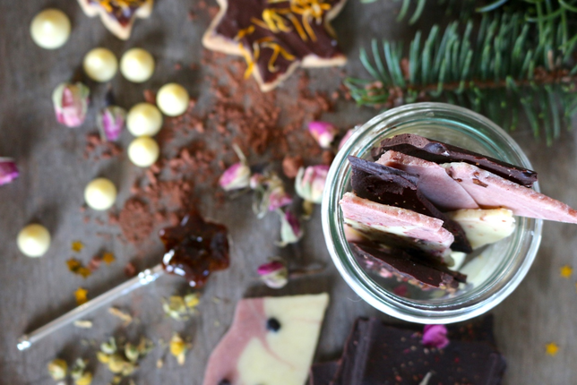 Weshalb wir gleich drei Sorten für euch zum Ausprobieren haben: dunkle, weiße und rosarote Schokolade. Aber Achtung: Nicht nur der Verzehr, sondern auch die Zubereitung von Schokolade kann süchtig machen ;)!