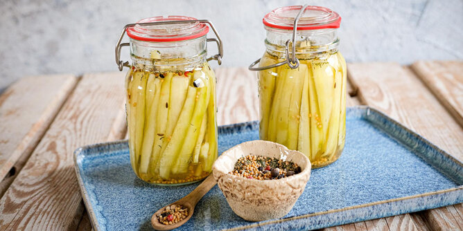 - Gläser für das Fermentiergut: Wer keinen speziellen Fermentiertopf besitzt, kann ganz einfach auf Gläser mit Bügelverschluss zurückgreifen. Diese sind nicht nur ideal, um überschüssiges Gas bei der Fermentation entweichen zu lassen - man kann den Mikroorganismen auch wunderbar bei der Arbeit zusehen.