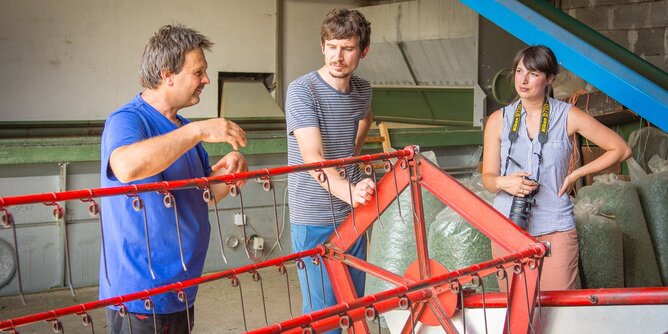 Die Familie Bauer zählt zu Sonnentors größten Blattkräuterlieferanten, da kann natürlich nicht mehr alles von Hand getan werden. Wir bestaunen also die Trocknungsanlage und den selbstumgebauten Kräuter-Mähdrescher. Wenn man uns nach diesem Besuch fragen würde, was einen erfolgreichen Landwirtschaftsbetrieb ausmacht, würden wir mit Innovation und Herzblut antworten. Genau diese beiden Eigenschaften sind uns bei den Bauers am meisten aufgefallen. Und eine Prise Mut braucht man natürlich auch, aber die hat Helga Bauer schon vor vielen Jahren bewiesen, als sie als eine der ersten auf den Sonnentor-Zug aufgesprungen ist.