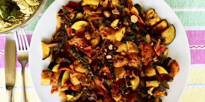 Mangold-Kokosnuss-Curry mit gerösteten Walnüssen