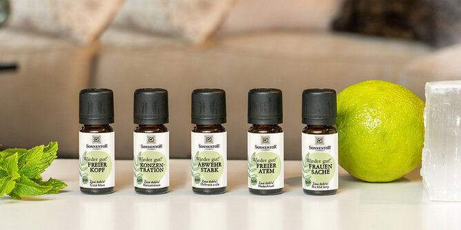 - Zitronenöl gilt als desinfizierend, soll das Immunsystem anregen und hebt durch seinen frischen Geruch gleichzeitig die Laune.