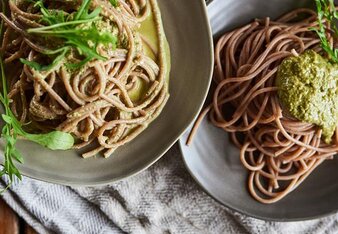 Wenn der Genuss von Weizen, Dinkel, Roggen und Gerste zu Bauchschmerzen, Krämpfen oder Verdauungsbeschwerden führt, streicht man diese Getreidesorten wohl besser von seinem Speiseplan. Was sich in der Theorie ganz einfach anhört, ist es in der Praxis nicht unbedingt. Vor allem Pizza und Nudelgerichte bestehen aus Weizenmehl und stehen somit auf der roten Liste. Es kann also gut sein, dass der Lieblingsitaliener um die Ecke keine glutenfreie Pasta auf der Menükarte hat - das bedeutet aber noch lange nicht, dass man von jetzt an komplett auf Nudeln verzichten muss. Selber machen lautet die Devise und zwar aus glutenfreien Mehlen. Und für Pizza gilt natürlich dasselbe in grün - mit einem knusprigen Boden aus Gemüse.