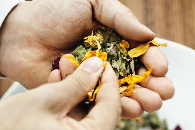 Auch wenn du viel zu tun hast: Gönn dir eine kleine Auszeit zwischendurch und nimm dir für die Zubereitung deines Tees bewusst Zeit. Während die Blätter und Blüten von Kräutertees zwischen den Fingern zerrieben und heiß aufgegossen werden, braucht man bei Früchtetees etwas mehr Muße. Sie werden kalt angesetzt und anschließend aufgekocht, um zum vollen Geschmackserlebnis zu kommen. Auch die Zubereitung von Schwarz-, Grün- und Weißtee wird seit jeher zelebriert.