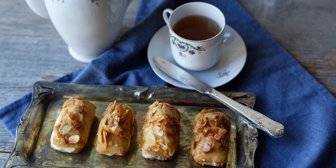 Der Apfelstrudel ist DER Klassiker der österreichischen Mehlspeisenküche und darf bei unserer Teejause natürlich nicht fehlen. In der Fingerfoodvariante eignet er sich besonders für eine gesellige Runde (wir denken dabei auch an den Abwasch) und mit Blätterteig zubereitet ist er sogar Ruck-Zuck fertig. Da es mittlerweile schon guten Blätterteig in Bio-Qualität zu kaufen gibt, greifen wir einfach darauf zurück, so bleibt mehr Zeit für die anderen Köstlichkeiten.