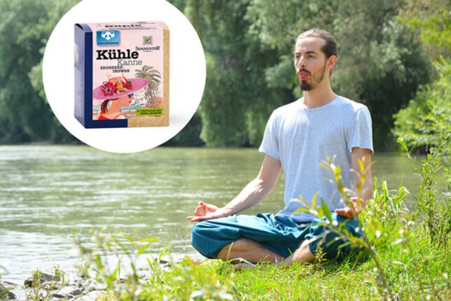 Bereite Dir eine feine Tasse „Kühle Kanne“ Erdbeere-Ingwer zu – schmeckt himmlisch fruchtig mit Wassermelone und Zitronenmelisse. Und gönne Dir ein paar Minuten SITALI – die kühlende Yoga Atmung.