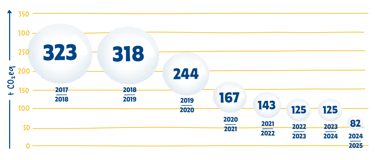 In den vergangenen Jahren konnten wir bereits einen Großteil unserer CO2-Emissionen senken. Dank unserer jährlichen Treibhausgasbilanz können wir nachvollziehen, welche Investitionen am meisten bewirken und neue Maßnahmen zielgerichtet implementieren.