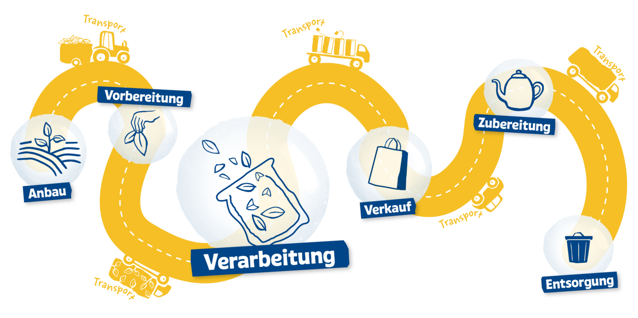 Transportprozesse machen einen Großteil unserer Emissionen entlang der Wertschöpfungskette aus. Bis unsere Produkte vom Feld in der Produktion und schließlich bei unseren Kund:innen landen, müssen sie meist viele Kilometer zurücklegen. Auch die tägliche Anreise unserer Mitarbeitenden, sowie Dienstreisen zu unseren Vertragspartner:innen verursachen Emissionen.