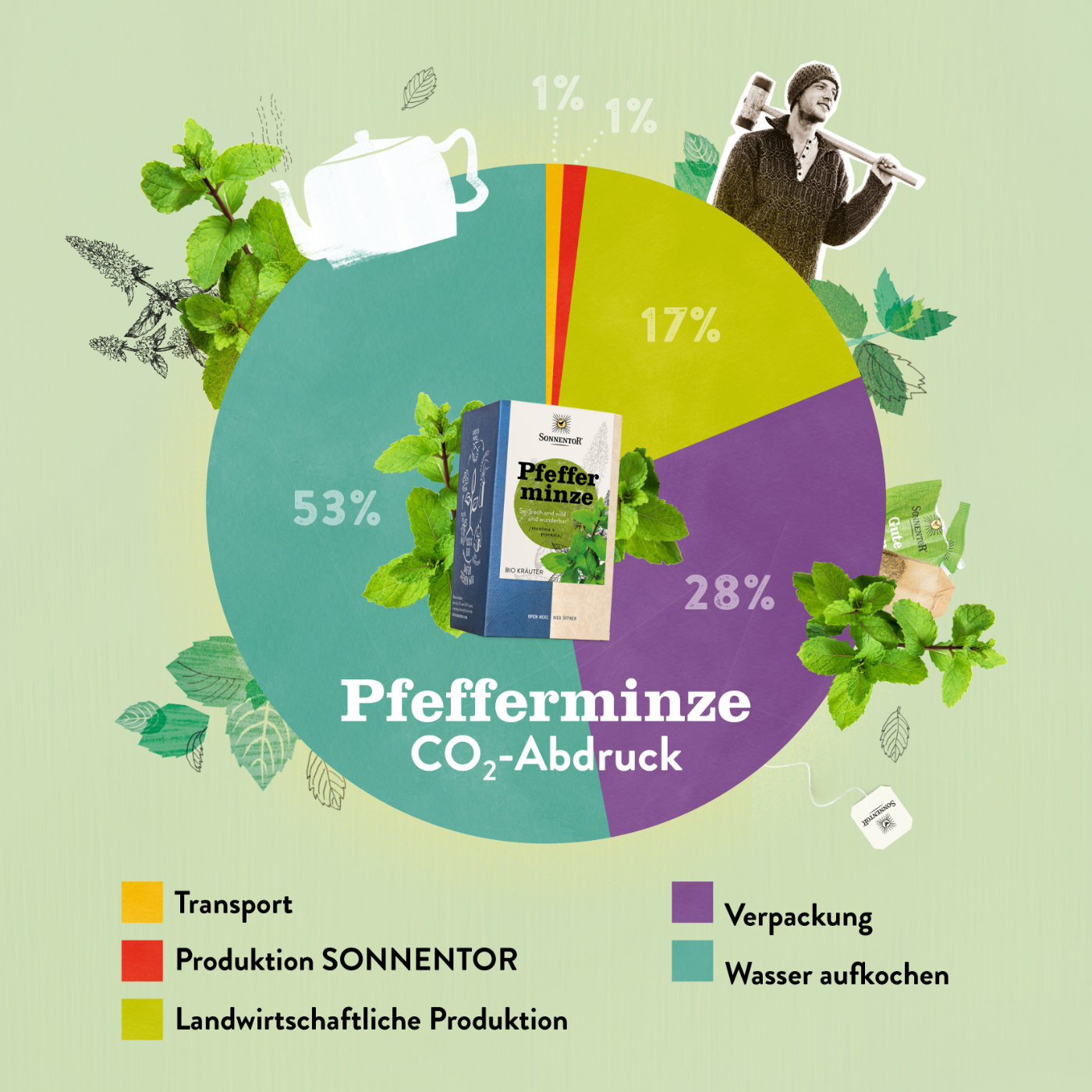 In den nächsten Jahren werden wir unseren CO2-Austoß nach und nach verkleinern, bis wir völlig emissionsfrei sind. Für jene Emissionen, die wir noch nicht vollständig verringern können, unterstützen wir Projekte, die selbst CO2 reduzieren bzw. durch den Aufbau von Humus langfristig im Boden binden. Der Fokus liegt aber auf der nachhaltigen Reduktion und Vermeidung von Emissionen. Du siehst: Ohne all diese Schritte sähe der Fußabdruck von unserem Herbquarter in Sprögnitz ganz anders aus.