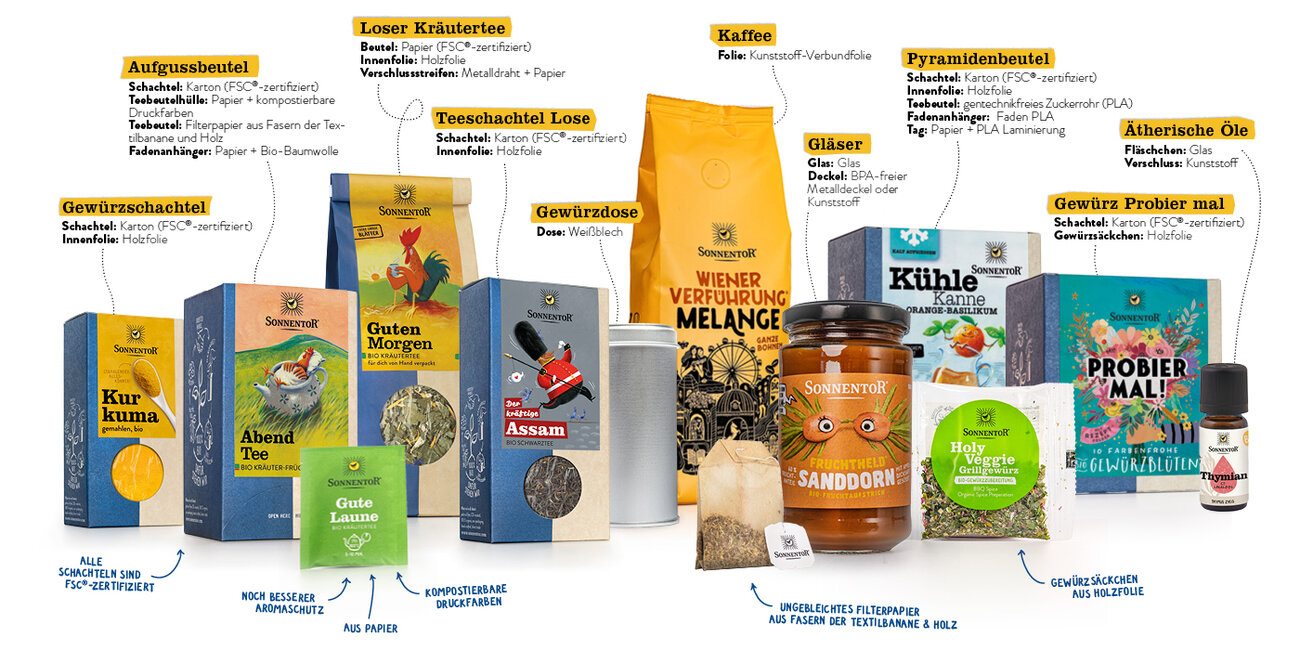 Für uns ist klar: Es geht auch anders. Bereits 2008 haben wir die Umstellung von konventionellen auf nachhaltige Materialien eingeleitet. Dazu zählen Folien aus Holzfaser, Teebeutel aus Bananenfaser, Papier und Karton. Was nicht kompostiert wird – wie zum Beispiel Glas und Metall, kann wiederverwertet werden. In Summe können bereits 93% unserer Verpackungen einem Rohstoffkreislauf zurückgeführt werden.