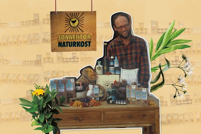 „Aber nein, Herr Inspektor – die stelle ich aus! Auf einer Fachmesse für Naturkost und Naturwaren. Dafür komme ich extra aus Niederösterreich, aus dem Waldviertel!“ erklärt SONNENTOR Gründer Johannes Gutmann begeistert. So recht überzeugt ist der strenge Herr zwar nicht, aber er winkt Hannes schließlich durch und der kommt doch noch rechtzeitig in Mannheim an, um den ersten SONNENTOR Messestand auf der zweiten Ausgabe der Biofach aufzubauen: Auf 9 Quadratmetern (kleinere Flächen gibt es nicht zu mieten) packt Johannes Gutmann seinen kleinen Holzaufsteller die inkriminierten Kräuter-Produktmuster aus. Ware hat er natürlich auch mit: ganze 30 Packerl Tee. Die komplette Ausstattung findet Platz in einem Bananenkarton und der einzige Mitarbeiter ist bereits vor Ort – denn das ist Hannes selbst.