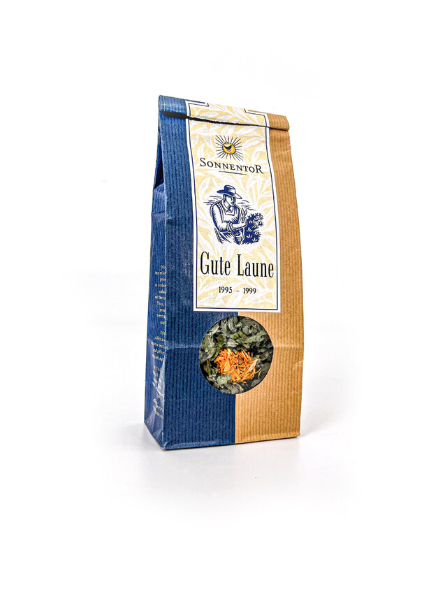 Zeitgleich startete auch das professionelle Verpackungsdesign bei SONNENTOR. Die Prototypen der heute für SONNENTOR so typischen blau-beigen Verpackung hatte Hannes auf die Biofach-Messe mitgenommen. Über Nacht wurden die leeren Sackerl prompt vom Messestand gestohlen. Hannes‘ Schlussfolgerung daraus: „Wenn die sogar gestohlen werden, obwohl nix drin ist, gefallen sie den Leuten anscheinend richtig gut!“ Er sollte Recht behalten.