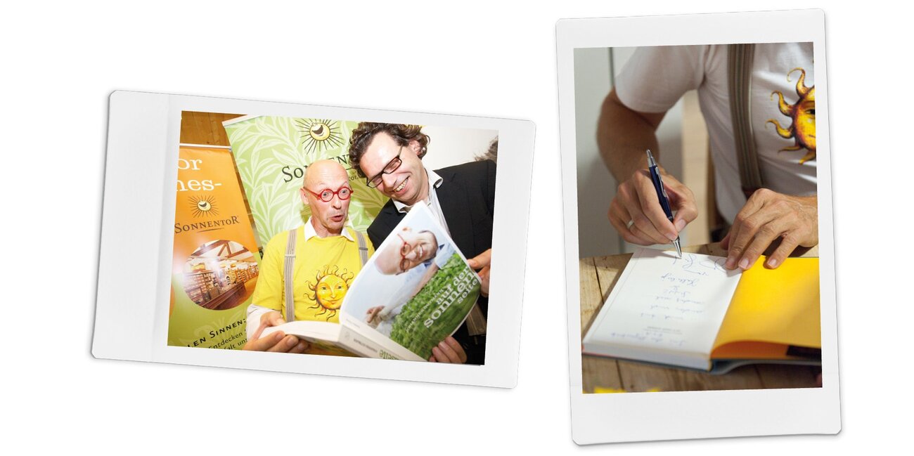 "Beim Schreiben von Büchern geht es für mich darum Momente festzuhalten. Sie sind Hilfe zur Erinnerung und zugleich wunderschöne Zeitzeugen für alle Ereignisse die das Leben mit sich bringt", so schildert es uns Johannes. Vor ihm liegt ein Stapel mit seinen bisher veröffentlichten Büchern. Eines davon sichtlich verstaubt, das haben wir zuvor noch aus dem Archiv gekramt. Ein Vorläufer vom aller ersten SONNENTOR Buch. Während Johannes darin blättert und sichtlich in Erinnerungen schwelgt, fragen wir ihn, wie das eigentlich gekommen ist, dass er als Unternehmensgründer auf einmal für mehr als nur Unterschriften zur Feder griff. Und wieder einmal führt uns die Spur zu jenen, denen wir letztendlich allen Erfolg zu verdanken haben: den SONNENTOR Fans.