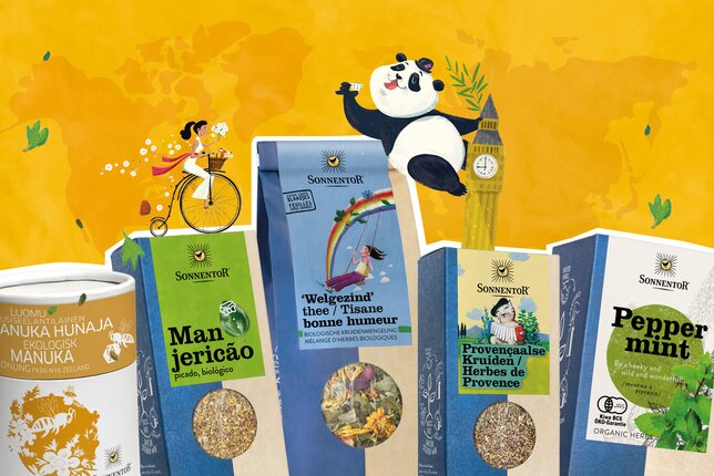 Für die herausragenden Bemühungen in Sachen internationale Handelsbeziehungen wurde SONNENTOR im Jahr 2017 beim Exportpreis der Wirtschaftskammer Österreich mit Silber ausgezeichnet. Aktuell liegt die Exportquote bei 66 Prozent. Aus dem Waldviertel reisen die bunten Bio-Produkte bereits in über 50 Länder und lassen die Herzen von Kräuterfans weltweit höherschlagen. Durch die hauseigene Druckerei und die händische Etikettierung für internationaler Bestellungen, ist bereits der Druck von kleinen Mengen an fremdsprachigen Etiketten möglich. Vertriebspartner:innen, die unsere Philosophie teilen, erleichtern wir so den Einstieg in neue Märkte. Damit fördern wir das Angebot für biologische Lebensmittel weltweit.