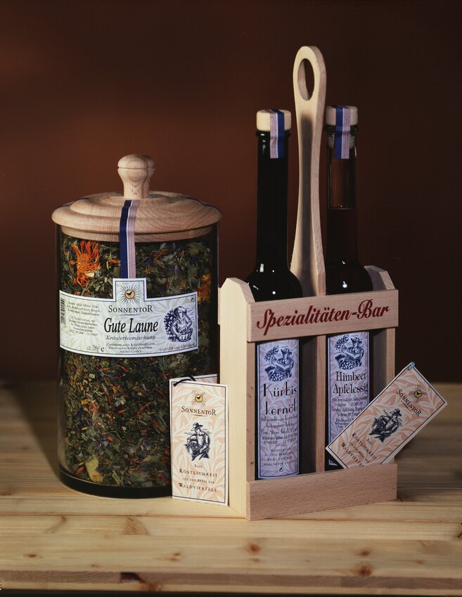 Auch aus diesen Erfahrungen haben wir natürlich gelernt: Wir konzentrieren uns auf das, was wir am besten können – nämlich unser Kernsortiment aus Tees, Kräutern und Gewürzen. Abgerundet wird die Vielfalt durch wenige, ausgewählte Produkte, die gut in die SONNENTOR Welt passen. Großer Beliebtheit erfreuen sich unter anderem Sirupe, Kekse oder Kaffee. So funktioniert es für uns und für unsere Fans am besten – und darauf kommt es schließlich an!