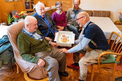 Apropos: Besonders wichtig war es Hannes immer, die Anbaupartner:innen vor den Vorhang zu holen. Schließlich arbeiten die Bauernfamilien das ganze Jahr über für die hervorragende Qualität der SONNENTOR Produkte. Beim Kräuterfest gab es die Gelegenheit, Anbaupartner:innen persönlich kennenzulernen. Außerdem wurde jedes Jahr ein:e Anbbaupartner:in mit der Goldenen Sichel ausgezeichnet. Die erste Goldene Sichel als Zeichen des Danks und der Anerkennung für ihre hervorragende Qualitätsarbeit ging 2005 an die Familie Kainz. Kurt Kainz zählt zu den SONNENTOR Ursprungs-Bauern: Gemeinsam mit den Familien Bauer und Zach hat er Hannes bei der Gründung von SONNENTOR vor 35 Jahren von Anfang an sein Vertrauen geschenkt.