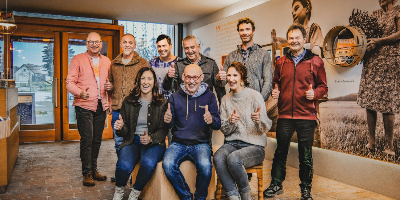 Bild vom gemeinsamen Treffen im Dezember 2024. Mit dabei: Gerhard Leutgeb (SONNENTOR Geschäftsführer/Vorstandsmitglied), Christian Weinbub (Vorstand), Andreas Ripfl (Vorstandsmitglied), Johann Aufreiter (Obmann des Vereins), Joahnn Neuner (Vorstandsmitglied), Herbert Bauer (Vorstandsmitglied), Sandra Bauer (Geschäftsleitung des Vereins), Johannes Gutmann (SONNENTOR Gründer), Sabine Schmidt (Vorstandsmitglied).