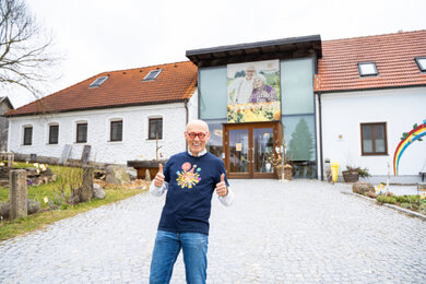 In den 31 Jahren in Sprögnitz wurde immer wieder gebaut und man könnte fast meinen, Hannes Gutmann ist ein alter Hase betreffend Baustellen. „Der Bau unseres neuen Holz-Hochregallagers war auch für mich etwas ganz Besonderes“, schwärmt er. Schon lange in seinem Kopf, konnte es nun endlich umgesetzt werden: Ein Lager fast gänzlich aus Holz, das mit einer Fläche von 3.000m², 9.000 Palettenstellplätzen und einer Höhe von 17 Metern einzigartig in Österreich ist. Im Herbst 2022 wurde es feierlich eröffnet und auf den Namen HimmelHoch–hervorgegangen aus einem Namensfindungs-Bewerb der Mitarbeitenden– getauft. Auf Platz zwei und drei der baulichen Highlights liegen bei SONNENTOR Gründer Gutmann „… der Bau des eigenen Bio-Gasthauses Leibspeis und jener der Kindertages-Betreuung SONNENSCHEINCHEN.“