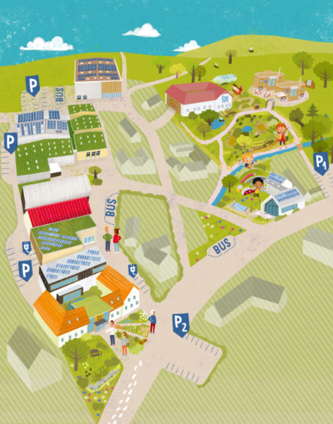 Seit 1995 wurde oftmals gebaut und vergrößert: Zuerst wurde das Dachgeschoß des Bauernhofes für Wohnzwecke und Büros ausgebaut und 1996 entstand die erste Halle mit dem klingenden Namen „Kreuz & Quer“. Weitere (Lager-)Hallen folgten Ende der 90er, in den 2000er und 2010er Jahren, die alle eins gemeinsam haben: einen sonnigen Namen. Schon damals ließ man sich kreative und beschreibende Bezeichnungen einfallen – eine Tradition, die bis heute fortgesetzt wurde. So heißen die Kräuter- und Gewürz-Hallen unter anderem RundHerum, WeltWeit, Halle-luja, Sonnenschein, Drunter & Drüber und ÜberDrüber. Viel Neues kam im Jahr 2006 hinzu, als das SONNENTOR Sinnes-Erlebnis mit Betriebsführungen, Kräuterwanderwegen und vielem mehr eröffnet wurde. Seither sprießen die Ideen immer weiter: Der Bio-Permakultur-Bauernhof Frei-Hof, die Land-Lofts, das Bio-Gasthaus Leibspeis, das Wald-Reich und weitere spannende Angebote locken Klein und Groß ins Waldviertel.