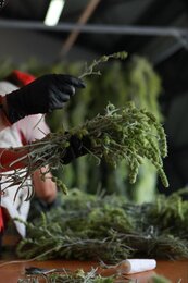 In Sprögnitz angekommen kontrollieren wir den Bergtee und ziehen Proben für die Qualitätseinstufung. Wir analysieren jede Charge auf über 600 Inhaltsstoffe.