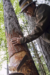 „Ab einem Alter von 60 Jahren ist sie zum Pechen geeignet“, rät Robert. „Vorher würde ich sie in ihrem Wachstum stören.“ Er vermeidet das Wort „verletzen“, obwohl ihm bewusst ist, dass er dem Baum Wunden zufügt. Er ist sich sicher: Da er Heilmittel für Mensch und Tier aus dem Harz herstellt, verbindet sie eine respektvolle Beziehung. Als Zeichen seiner Wertschätzung geht er am Ende eines jeden Pecherjahrs zu den Bäumen und bedankt sich – zum Beispiel mit Tabak. „Das haben die Baumgeister ganz gern“, sagt er mit einem wissenden Lächeln. „Ich habe ihnen aber auch schon Rosen oder Süßes vorbeigebracht.“
