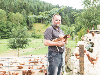 Strength is found in serenity. A proverb that could not be more fitting for the Grünstäudl family farm. Secluded and surrounded by meadows with grazing sheep, it lies just outside the village of Brunn which belongs to the market town of Arbesbach, in the center of the Waldviertel high country. Tranquil "Loschenhof", as the farm is referred to, is renowned for its superb organic products.