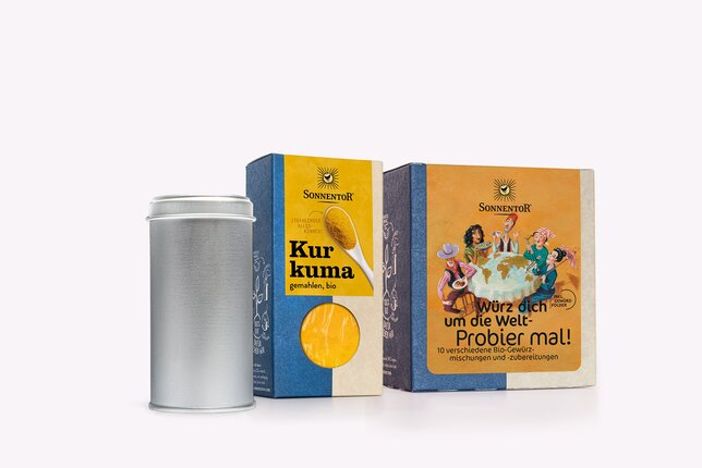 Our “Try it!” packs give you the opportunity to get to know and try out several of our products in small quantities. As with our spices, the boxes are made of FSC®-certified cardboard and the small spice sachets are made of compostable wood foil.