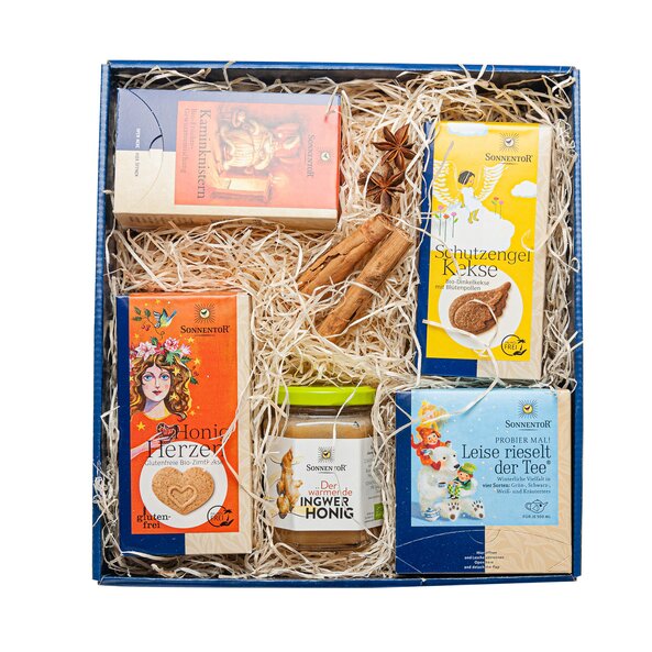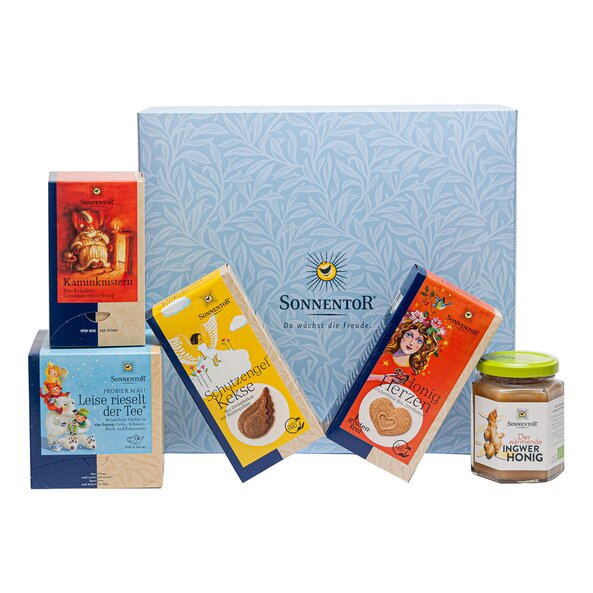 Content: Silent Night Tea Try it! org., Warming Honey org., Fireplace Fruit Tea org. tea bags in dispenser box, Gingerbread Honey Hearts Cookies gluten-free org., Guardian Angel Cookies org., While stocks last. You can find the ingredients, nutrition information and allergens of each kind at the equal product.