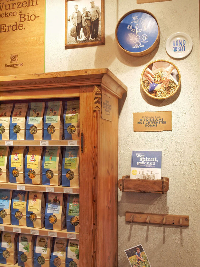 The products are displayed in the unique atmosphere that is characteristic of the SONNENTOR brand: enjoyment meets rural tradition and contemporary design. In addition to tea, coffee and organic juices, there are also some organic Waldviertler specialties on offer which can be enjoyed in the cozy ambience of the shop - and those who wish to savour sweet temptations on the spot, can go on a quick culinary discovery trip to the Waldviertel. Take a break from the busyness of shopping and enjoy the slowed atmosphere at SONNENTOR Innsbruck.