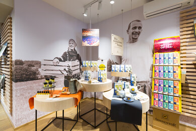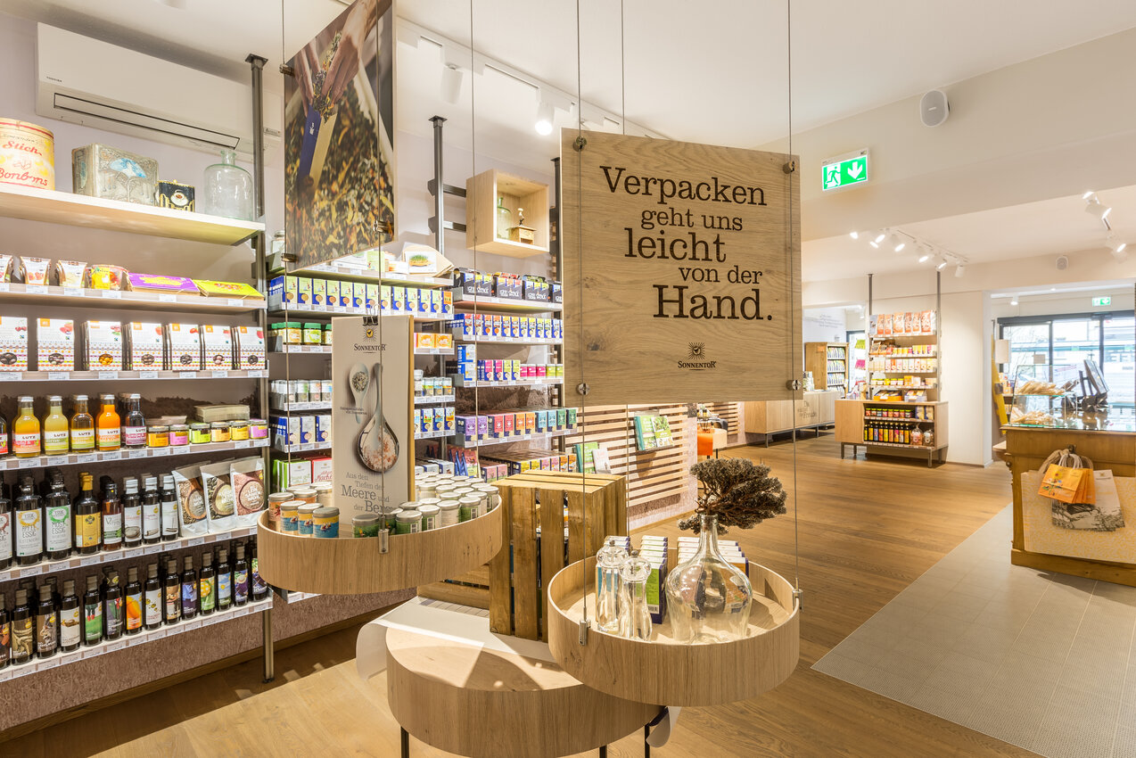 The products are presented in the unique sensual atmopshere, that stands for SONNENTOR: delight meets rustic tradition and modern design. We offer beside tea, coffee and organic drinks also organic sweets in a cozy ambience - who wants can try the sweet delights locally and go on a small Waldviertel-adventure.