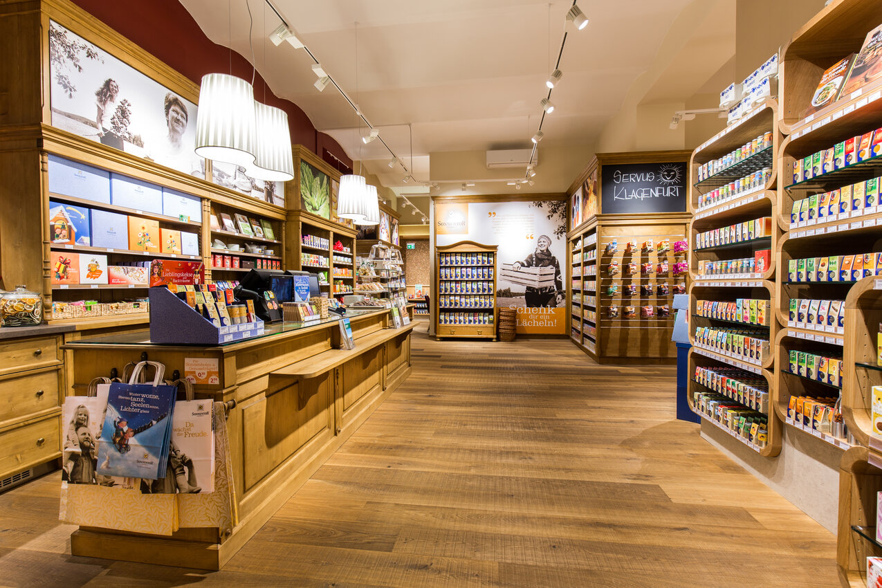 In the SONNENTOR shop in Klagenfurt, led by franchise partner Martin Mautendorfer, all the organic products are united under the laughing sun logo, from "Cheery Tea" and "Viennese Temptation Coffee" to “Spices Advent Calendar” and the popular children's line “Bio-Bengelchen” and a variety of creative gift ideas and accessories.