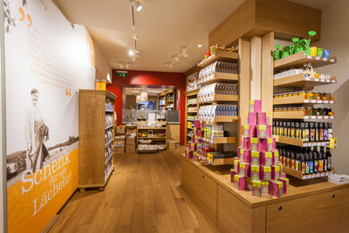 Now, you can enjoy our unique ambience in the city center of Linz (Herrenstraße 3). The warm interiors combined with traditional farm pictures give the shop a cozy atmosphere. In the modern wooden elements, you will discover our wide organic range, from teas to spices to sustainable and creative gift ideas.